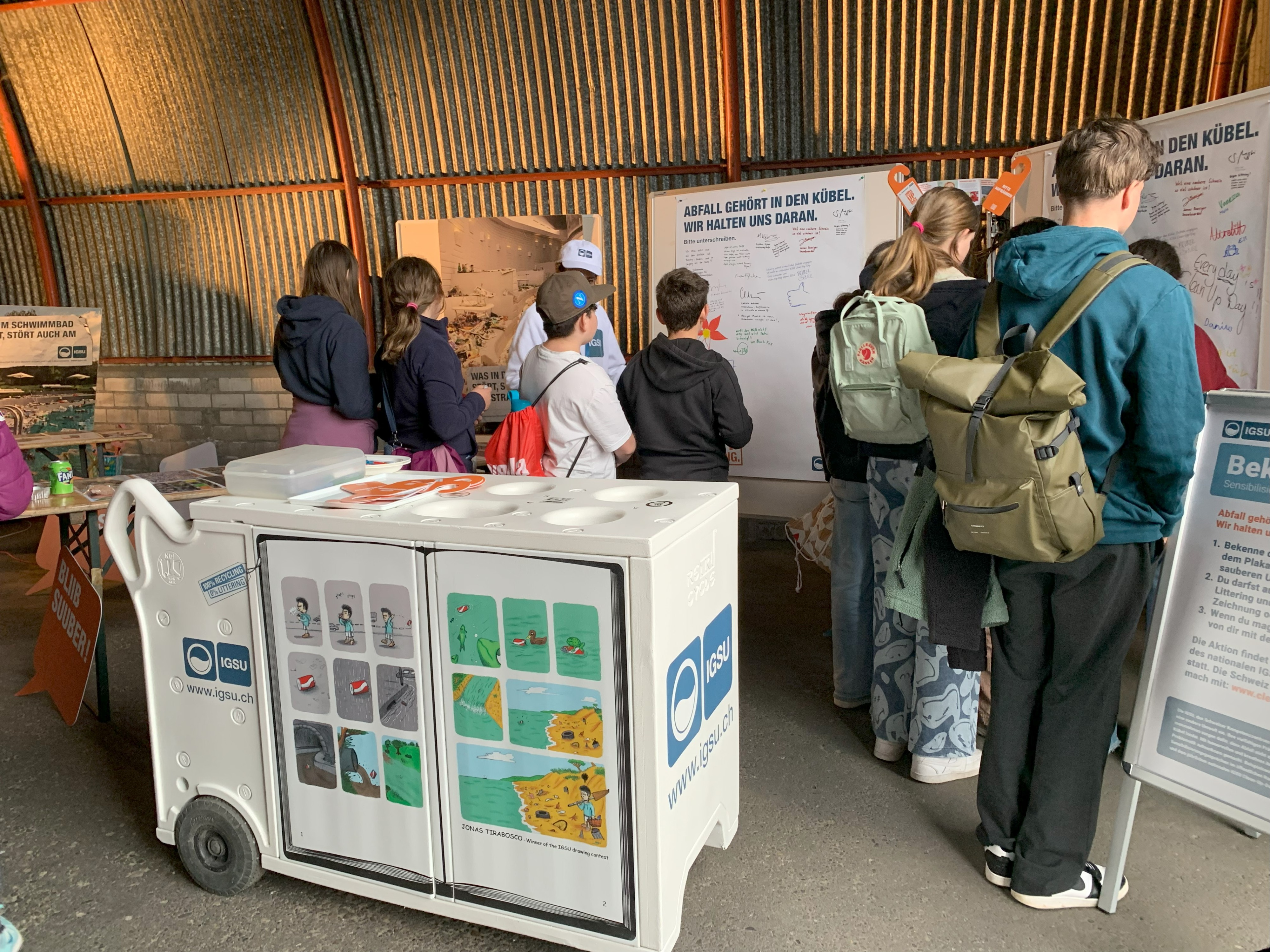 Die Sensibilisierungseinsätze der IGSU-Botschafter-Teams sind eine der wirkungsvollsten Massnahmen der IGSU: Seit 2007 ziehen sie jeden Sommer durch alle Landesteile der Schweiz und sensibilisieren Passantinnen und Passanten auf freundliche und humorvolle Art für die Themen Littering und Recycling. Auch im Herbst und im Winter finden Einsätze statt: Dann sensibilisieren die IGSU-Botschafter-Teams auf Wanderwegen und in Skigebieten. Sie sorgen auch an Events wie Streetfood-Festivals, Stadtfesten oder Chilbis für weniger Littering und sensibilisieren mit Workshops Schülerinnen und Schüler vom Kindergarten bis zur Berufsschule oder Gymnasium gezielt für die Littering-Problematik.
